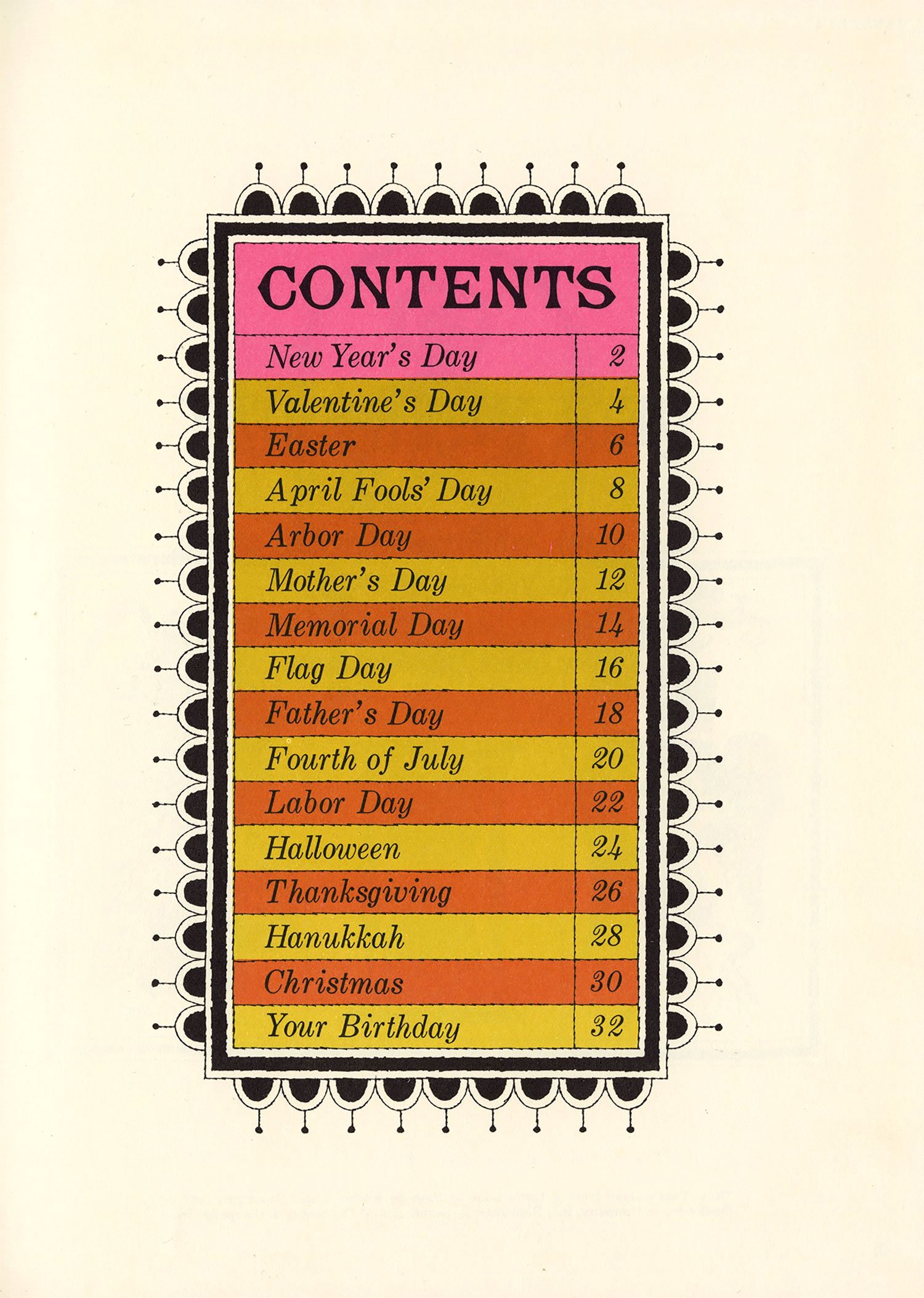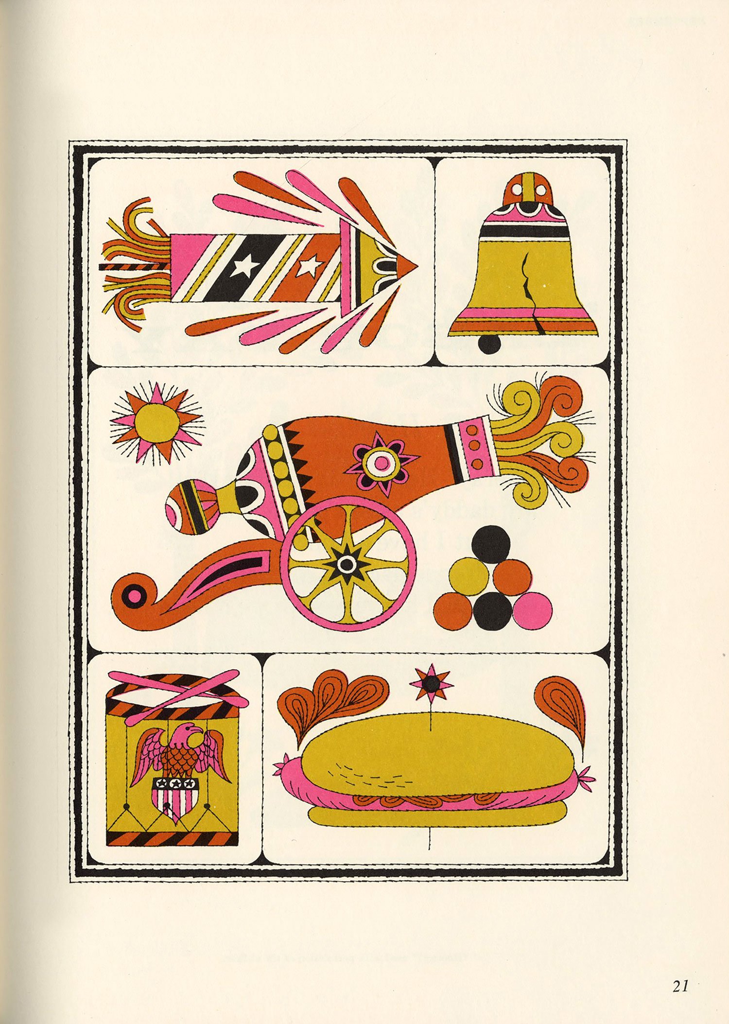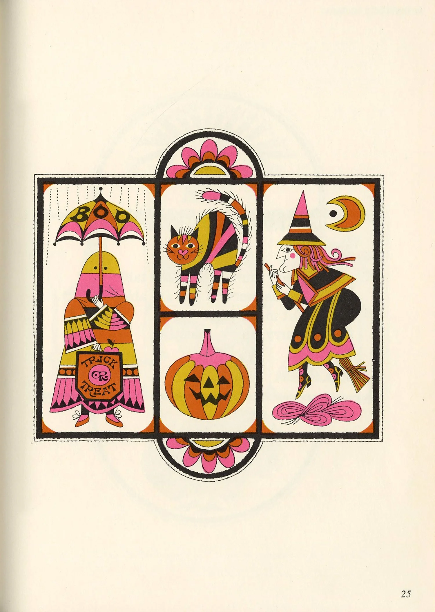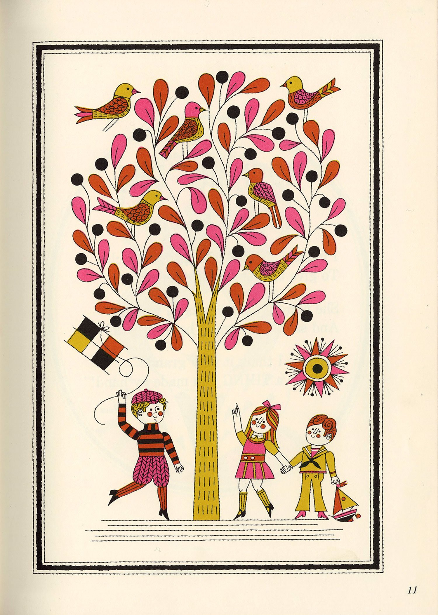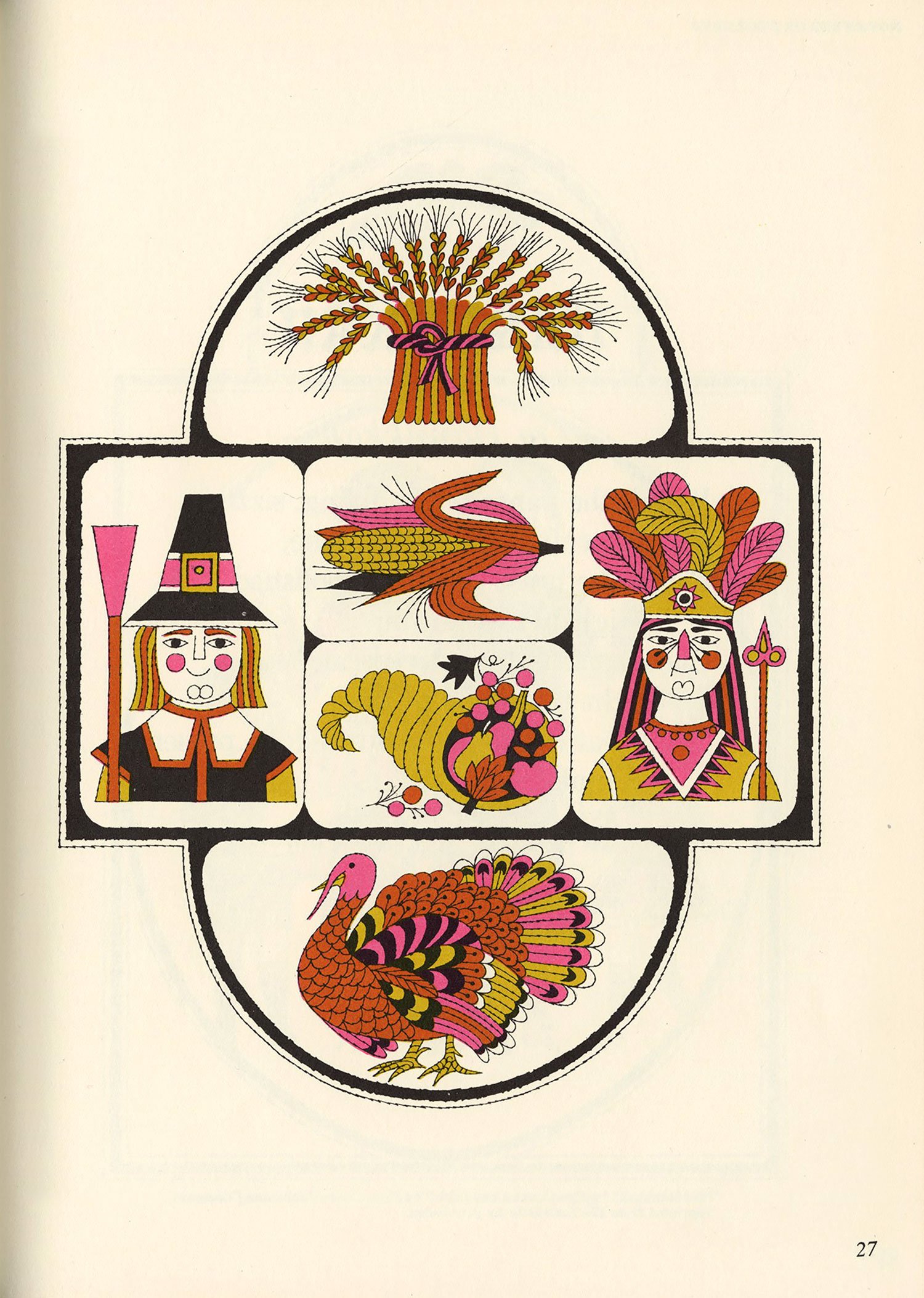 After a bit of a hiatus, I finally dusted off the scanner this afternoon. This book surfaced at the top of my pile randomly but fortuitously, as it’s been a while since I’ve posted anything by Naiad Einsel, one of my favorite illustrators. Alongside her delightful artwork, I love the simple but effective use of a different display typeface on each page, the oh-so-mid-century pink-and-gold color palette, and the various borders framing each illustration.