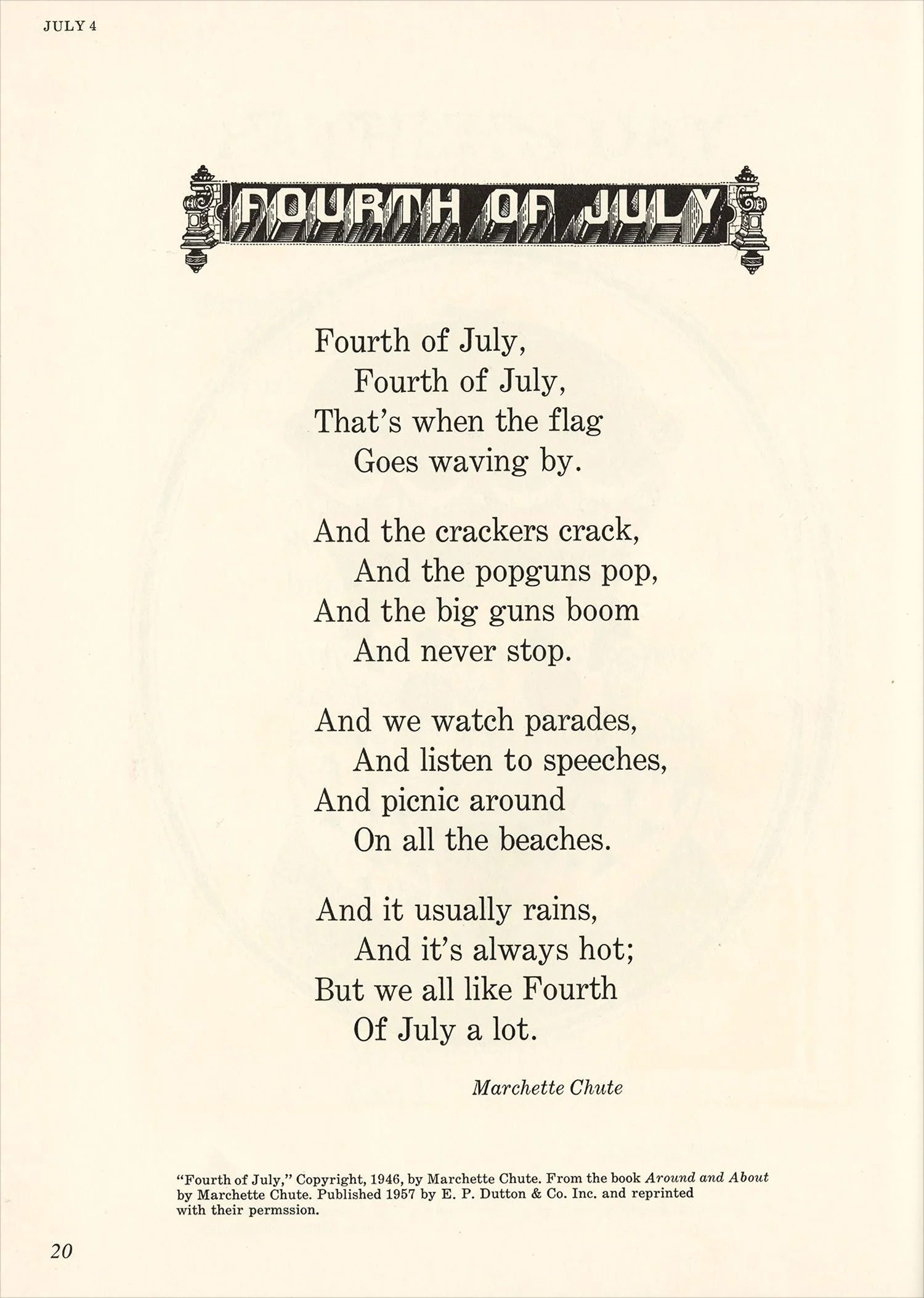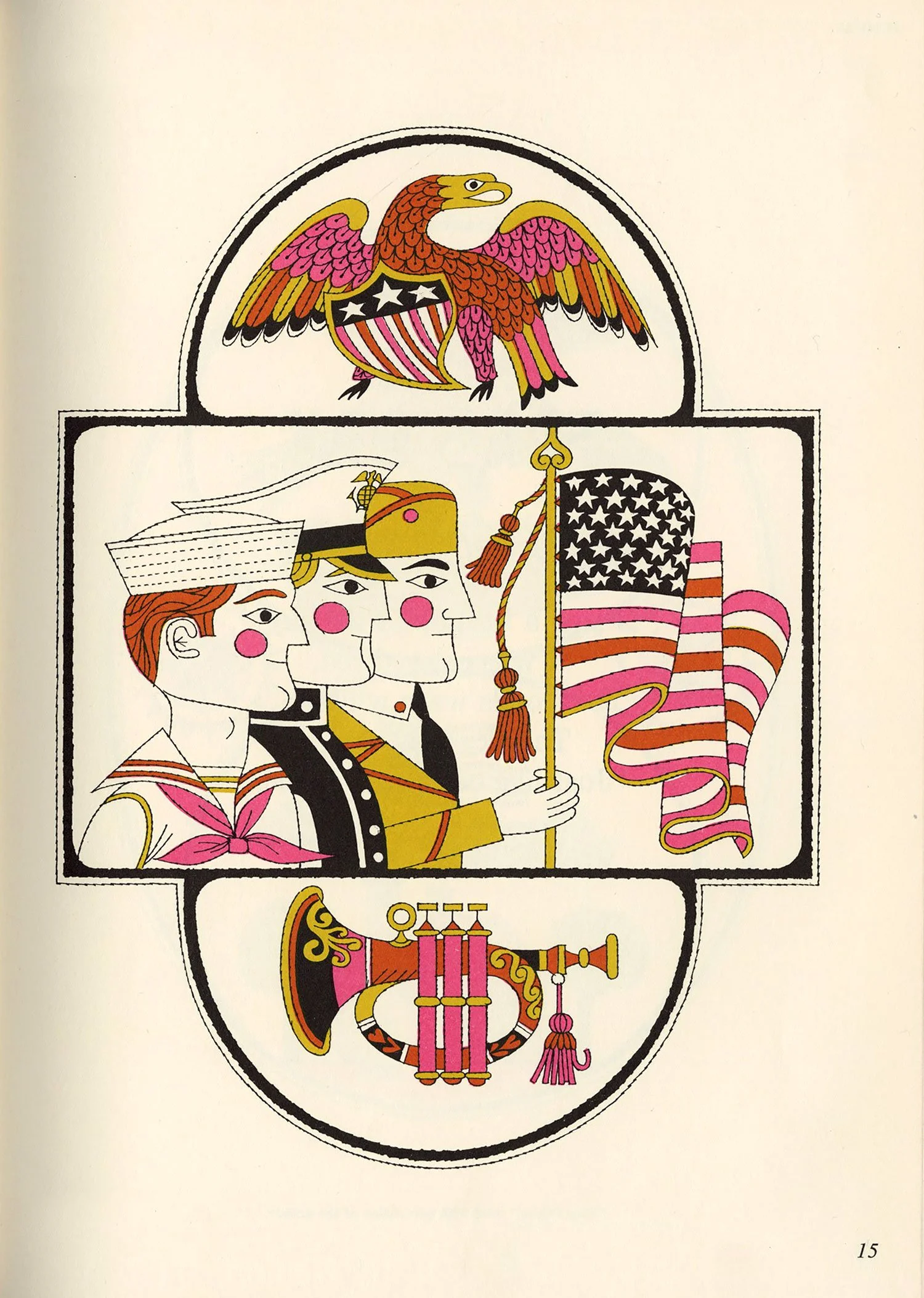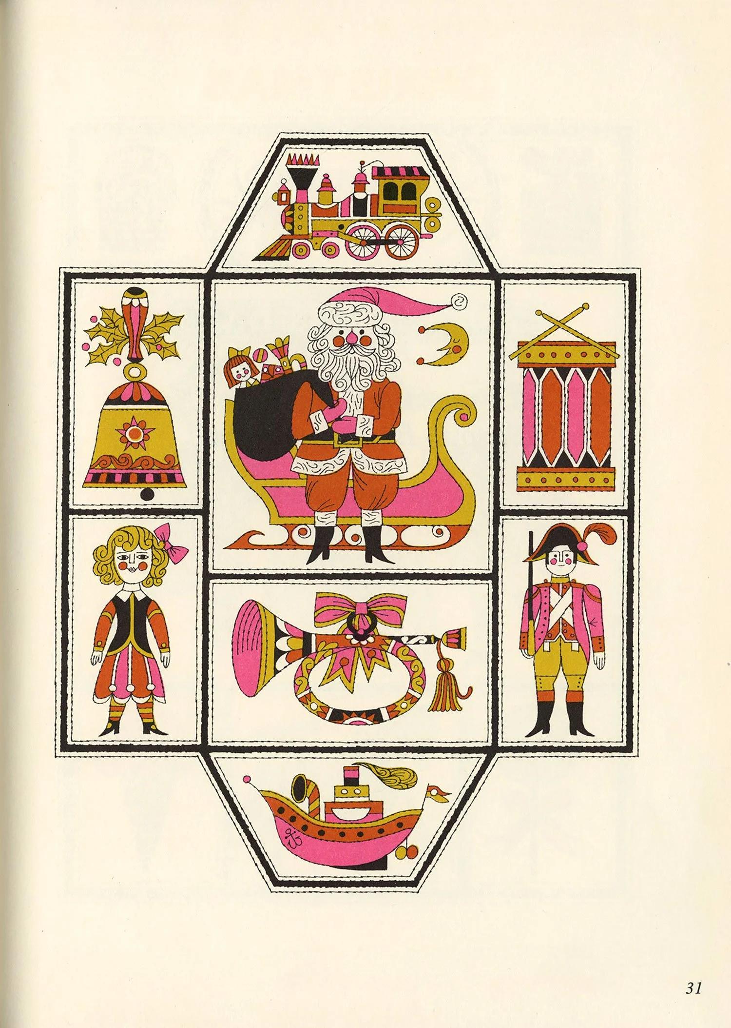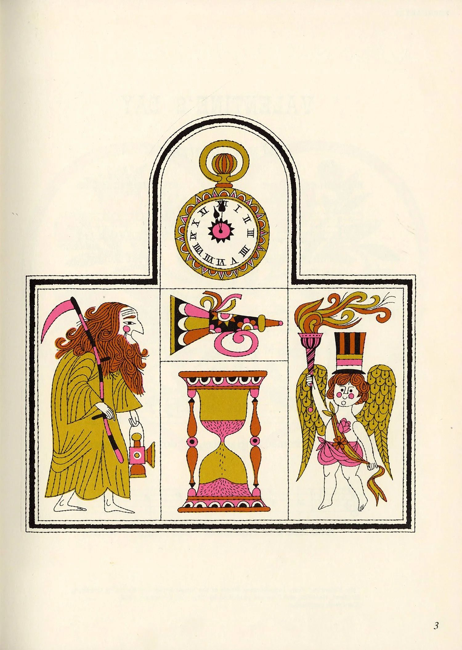 After a bit of a hiatus, I finally dusted off the scanner this afternoon. This book surfaced at the top of my pile randomly but fortuitously, as it’s been a while since I’ve posted anything by Naiad Einsel, one of my favorite illustrators. Alongside her delightful artwork, I love the simple but effective use of a different display typeface on each page, the oh-so-mid-century pink-and-gold color palette, and the various borders framing each illustration.