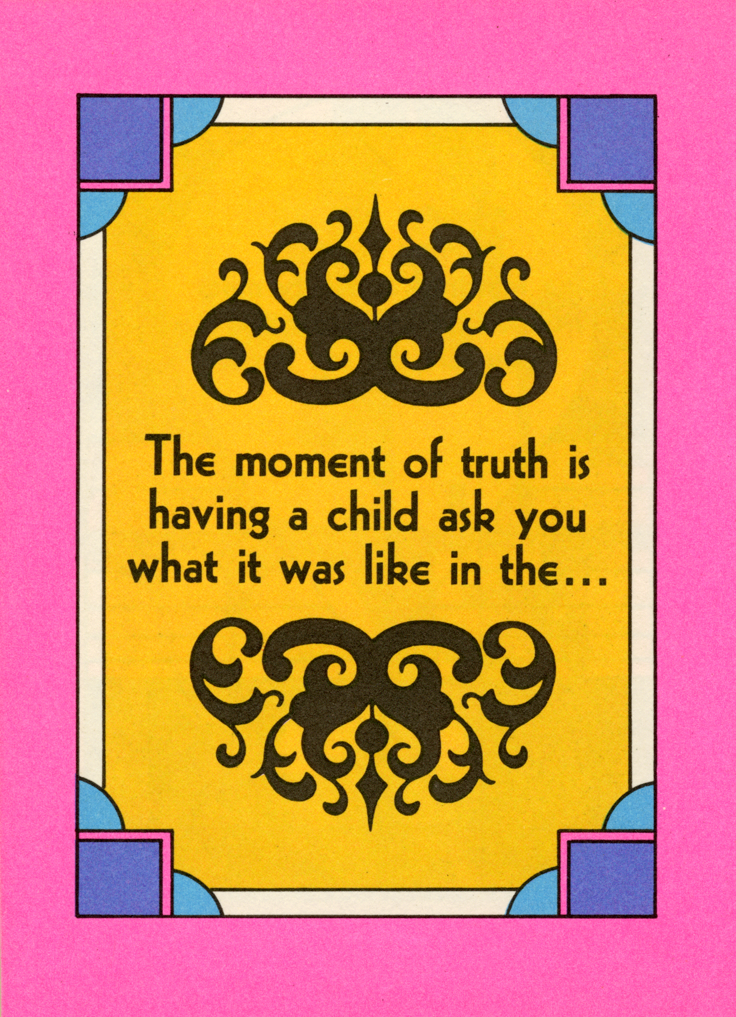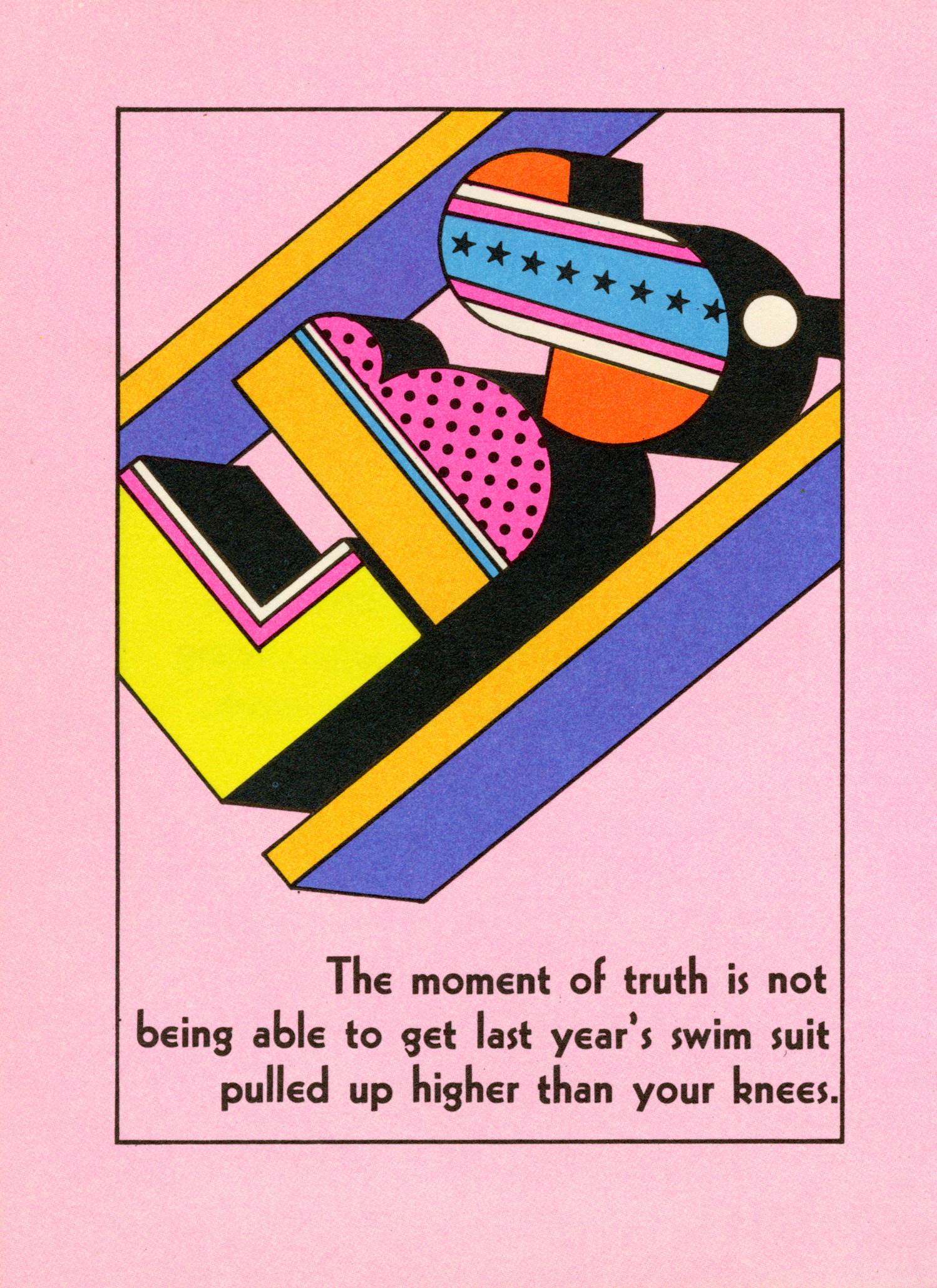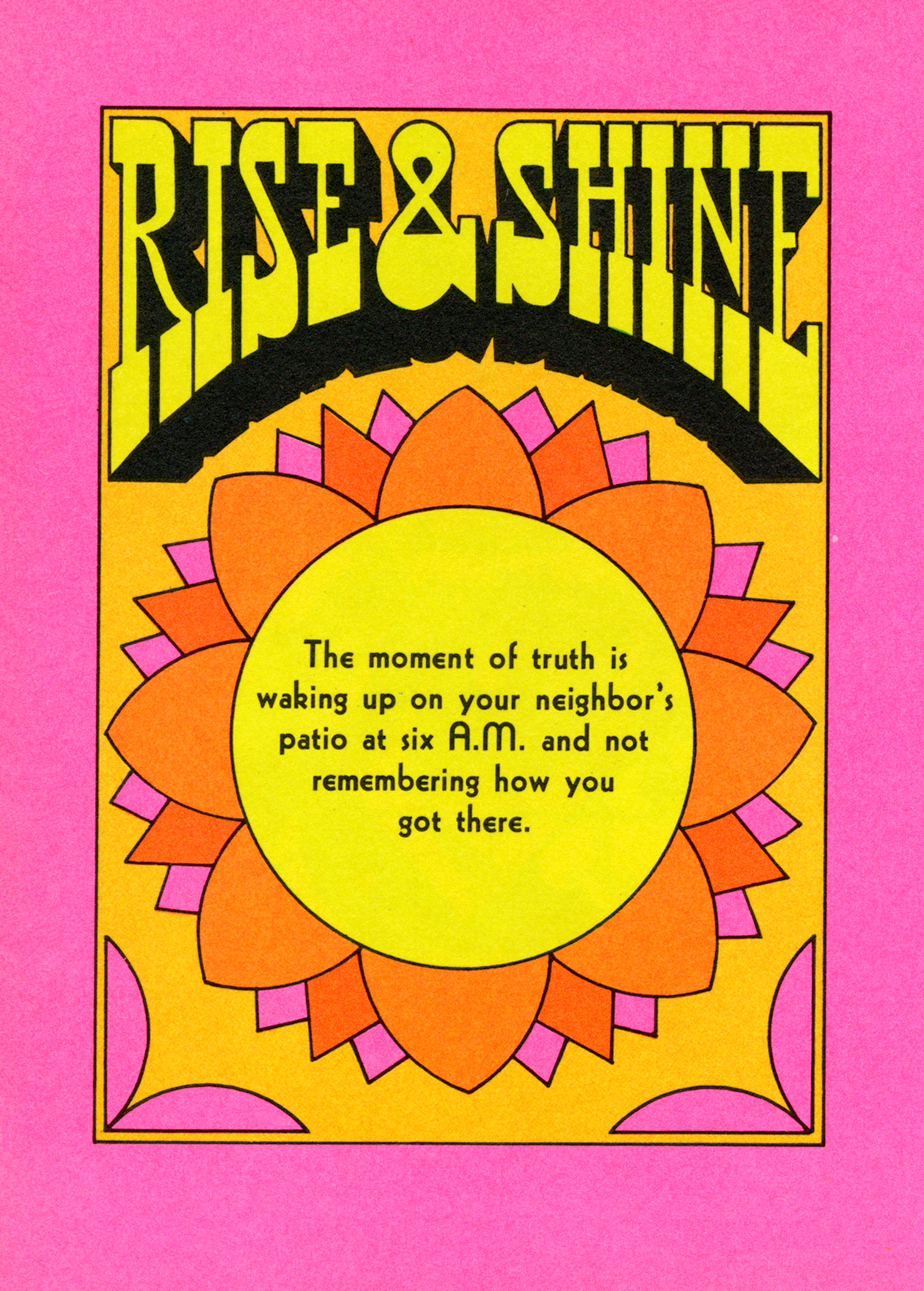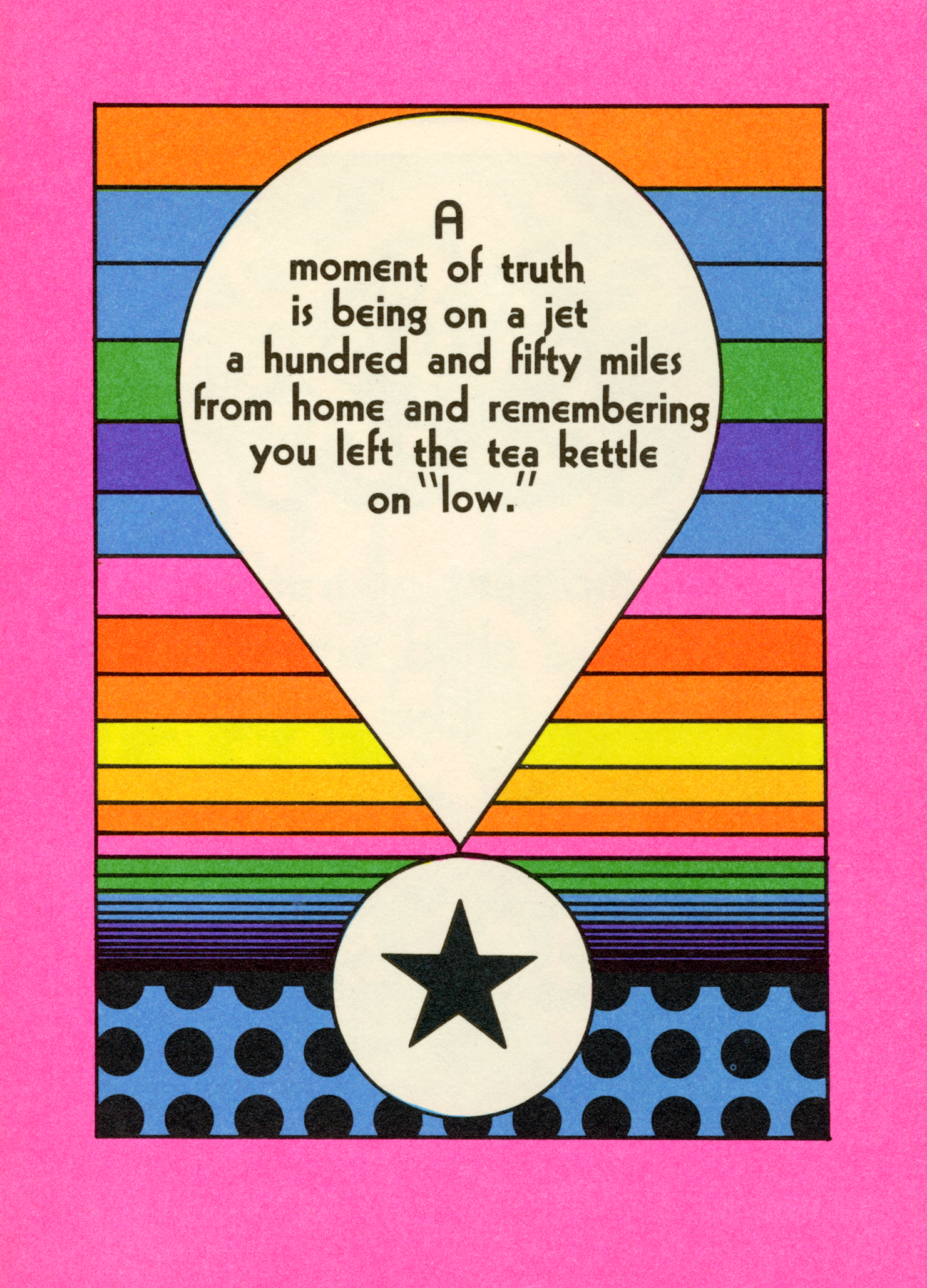 Another wildly colorful Hallmark treasure from 1971, illustrated by the endlessly inventive Mike Strouth—one of my favorite artists from this era. Published by Hallmark Cards, Inc., 1971. See more Hallmark psychedelia.
